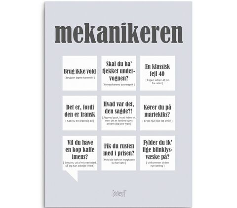 Kan anvendes som en humørfyldt hilsen, tillykkekort eller bare en selvironisk dekoration til din egen væg.