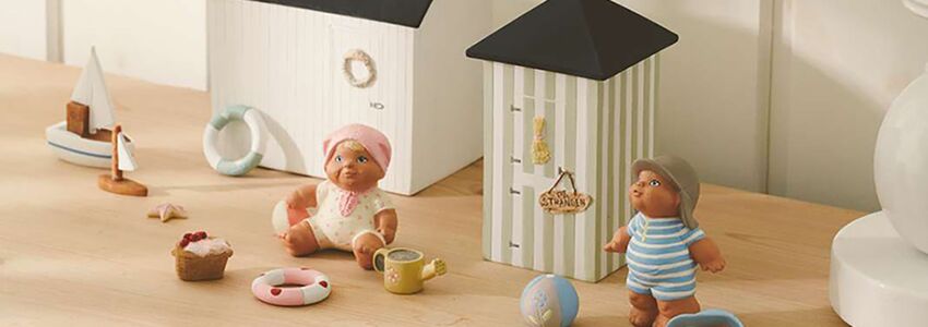 Etly Klarborg har skabt en kollektion af badebørn, badehuse og stemningsfuldt tilbehør. Hun er belvet insporeret af sine børnebørn. Og hvad er mere hyggeligt, eb´nd at tage på stranden en sommerdag med en fyldt madkurv, badetøj og legetøj til stranden.